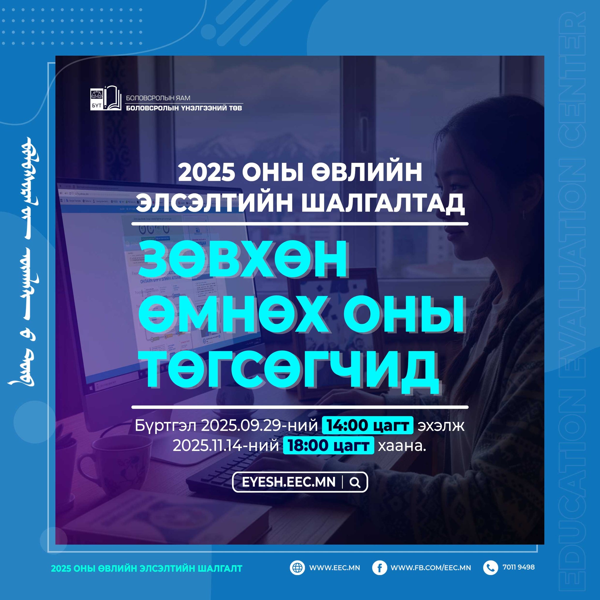 Бүртгэл 2025.09.29-ний 14:00 цагт эхэлж 2025.11.14-ний 18:00 цагт хаагдана.