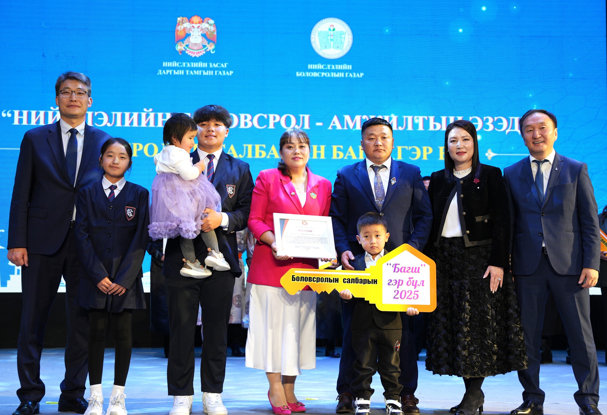 Сургалтын бодлогыг хэрэгжүүлэгч мянга мянган багш нараас ажлын амжилт, ёс зүй, ур чадварын хувьд хамт олондоо хүлээн зөвшөөрөгдсөн, нийслэлийн боловсролын салбарт 10 буюу түүнээс дээш жил, гэр бүлээрээ тогтвор суурьшилтай ажилласан БАГШ ГЭР БҮЛ-д түрээслээд өмчлүүлэх орон сууцыг олголоо.