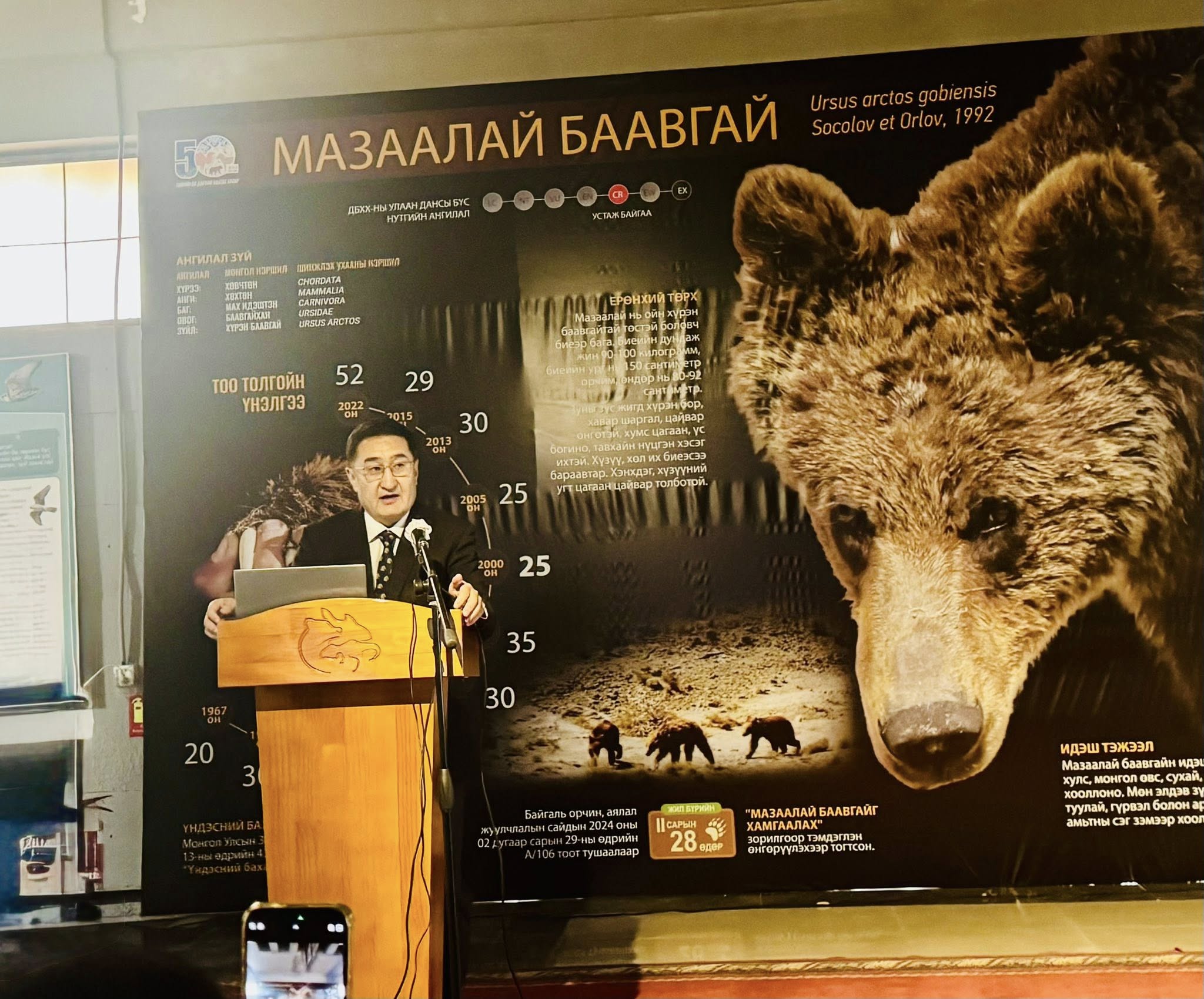 Энэхүү бодлогын хэрэгжилтийн хүрээнд Монгол Улсын Ерөнхийлөгчийн Тамгын газар, Байгаль орчин, уур амьсгалын өөрчлөлтийн яамны санаачилга, дэмжлэгтэйгээр Нийслэлийн боловсролын газар, Байгалийн түүхийн музей хамтран “Үндэсний бахархалт амьтан мазаалай баавгайг таниулах” сургалт, үйл ажиллагааг Байгаль орчны мэдээлэл сургалтын төв ТББ гүйцэтгэн зохион байгуулж байна.
