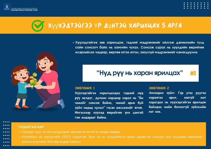 ХҮҮХЭДТЭЙГЭЭ ҮР ДҮНТЭЙ ХАРИЛЦАХ 5 АРГА