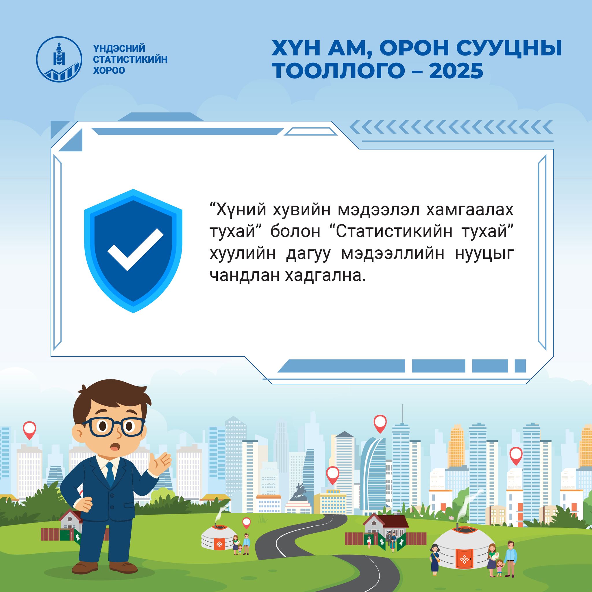 ХҮН АМ, ОРОН СУУЦНЫ ЗАВСРЫН ТООЛЛОГО – 2025